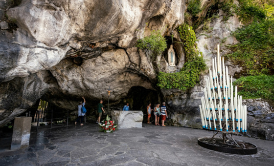 - Zapoznanie z Sanktuarium Matki Bożej: Bazyliki, Grota Objawień – tu 11.02.1858 r. Matka Boża po raz pierwszy ukazała się św. Bernadecie